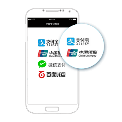 翔付,为iOS/Android原生/H5 App提供支付解决方案:支持微信支付、支付宝支付、银联手机支付、百度钱包等。